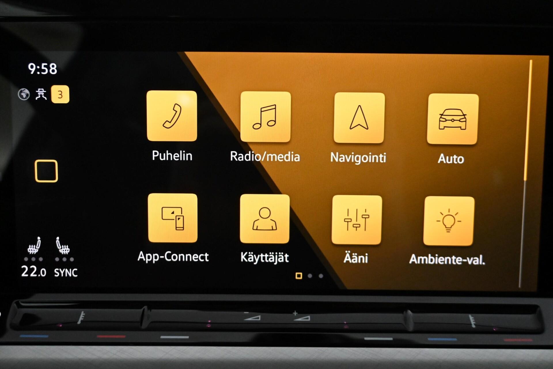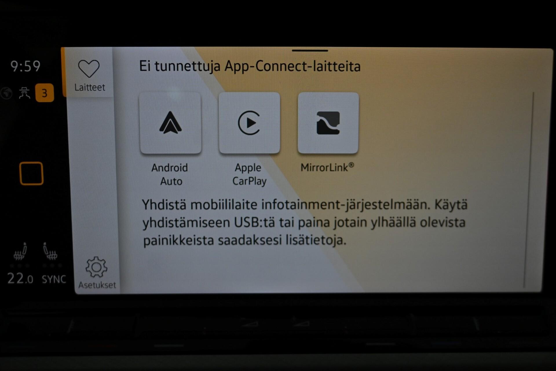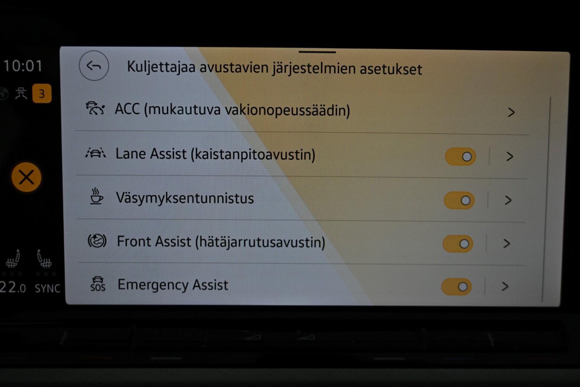 - AjonvakautusjärjestelmäAjotietokoneAvaimeton käynnistysBluetoothHuoltokirja: SähköinenIlmastointi: AutomaattinenIsofix-valmiusKaadettavat takaistuimetKahdet renkaatKaistavahtiKeskuslukitus: KaukosäätöinenKevytmetallivanteetKäynnistyksenestoLED-ajovalotLuistonestojärjestelmäLukkiutumattomat jarrut (ABS)Lämmitettävä ohjauspyöräMonitoimiohjauspyöräMäkilähtöavustinOhjaustehostinPenkinlämmittimetPolttoaine- / akkukäyttöinen lisälämmitinPysäköintitutkaRengaspainevalvonta -järjestelmäSadetunnistinStart-stop-järjestelmäSumuvalotSähkökäyttöiset ikkunatSähköpeilitTurvatyynytUSBVakionopeudensäädin: MukautuvaÄlypuhelimen integrointiÄänentoistojärjestelmä